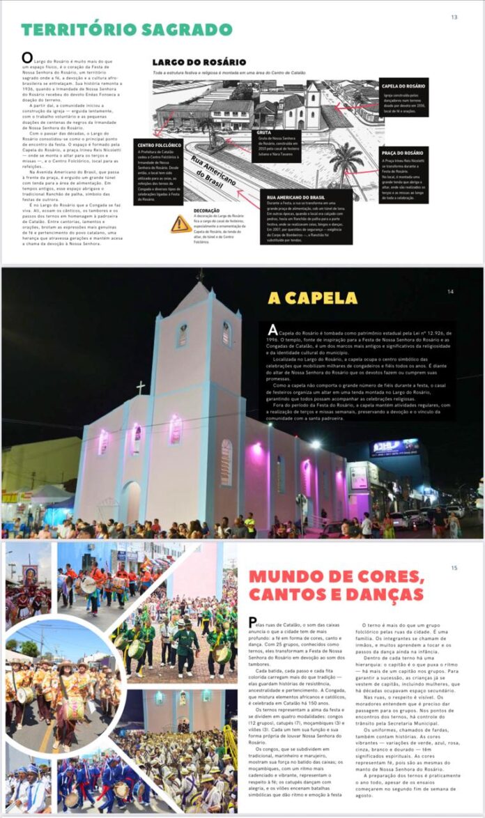 Idealizada pela historiadora Estela Maris Fernandes, a publicação é patrocinada pela Política Nacional Aldir Blanc (PNAB), por meio do Ministério da Cultura, e conta com o apoio da Prefeitura de Catalão e da Fundação Maria das Dores Campos. A Cartilha apresenta, de forma inédita, a estrutura, o funcionamento e a dimensão cultural de uma das maiores celebrações afro-brasileiras do País. A obra dedica capítulos à história da festa, ao papel dos festeiros, ao calendário oficial, ao significado dos ternos e ao conjunto simbólico que sustenta mais de 150 anos de devoção.
