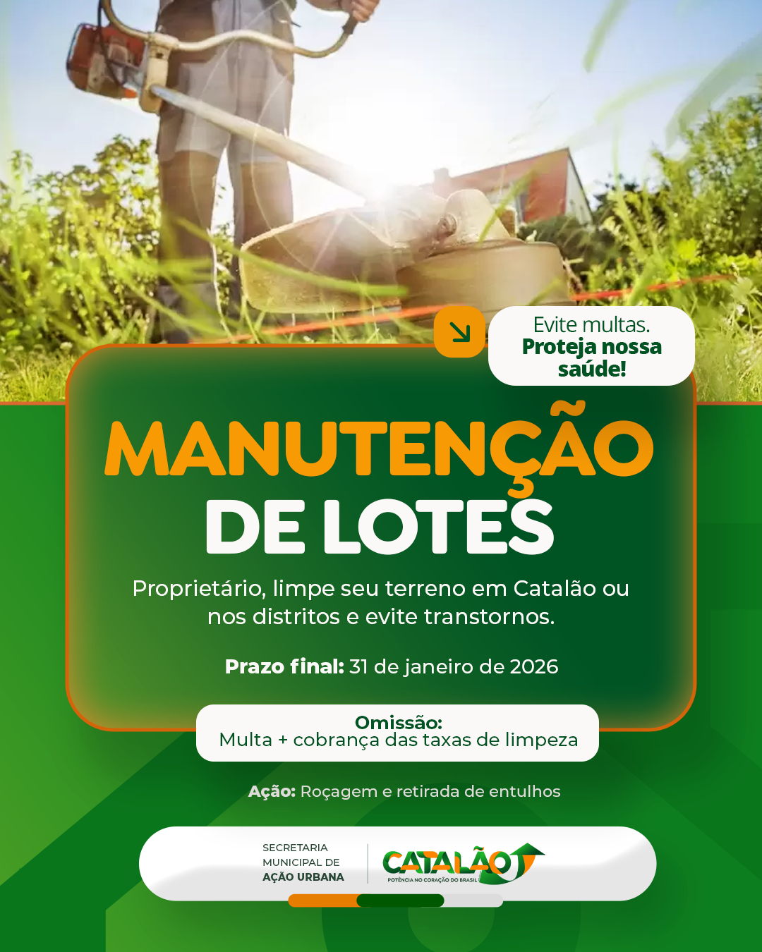 A medida visa combater a proliferação de insetos (como o mosquito da dengue), roedores e animais peçonhentos, além de impedir o descarte irregular de lixo, garantindo a segurança e a saúde de toda a comunidade da cidade de Catalão e dos distritos.